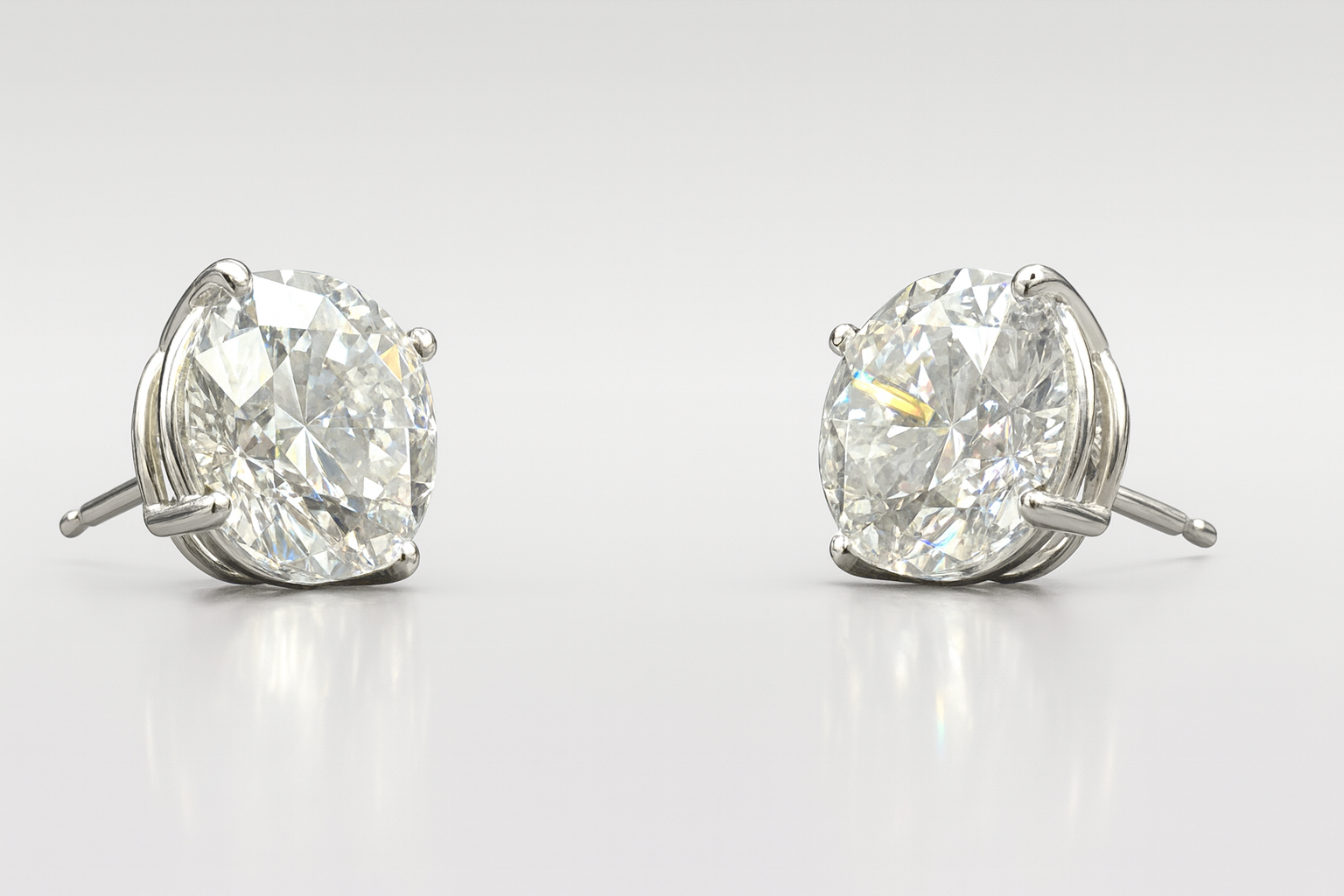6 carat total weight IGI F VS1 Ideal Cut Round Lab-Grown Diamonds set in 14k White Gold four-prong baskets - two diamonds - approximately 3 carats each